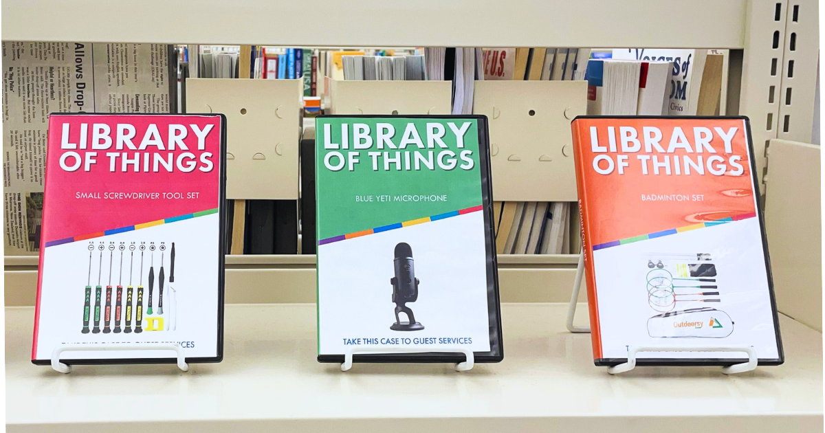The Library of Things is a collection of items you can checkout! From technology and office equipment to creative tools and event supplies, we have items that you can borrow for free with your library card. Browse the Library of Things collection.